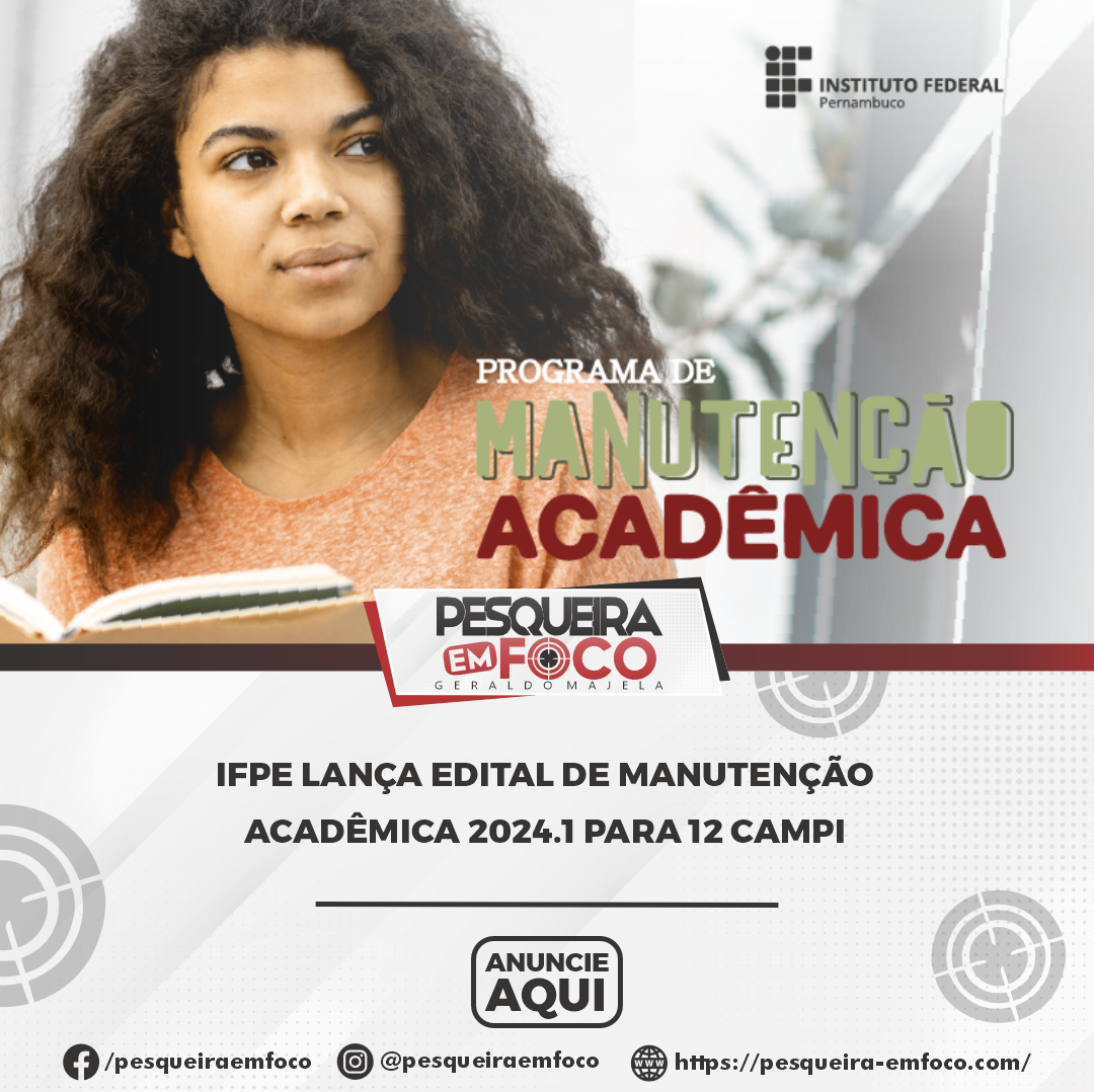 O IFPE divulgou o edital referente ao Programa de Apoio à Manutenção Acadêmica 2024.1 dos campi Abreu e Lima, Afogados da Ingazeira, Barreiros, Belo Jardim, Caruaru, Igarassu, Garanhuns, Olinda, Paulista, Palmares, Pesqueira e Vitória de Santo Antão.