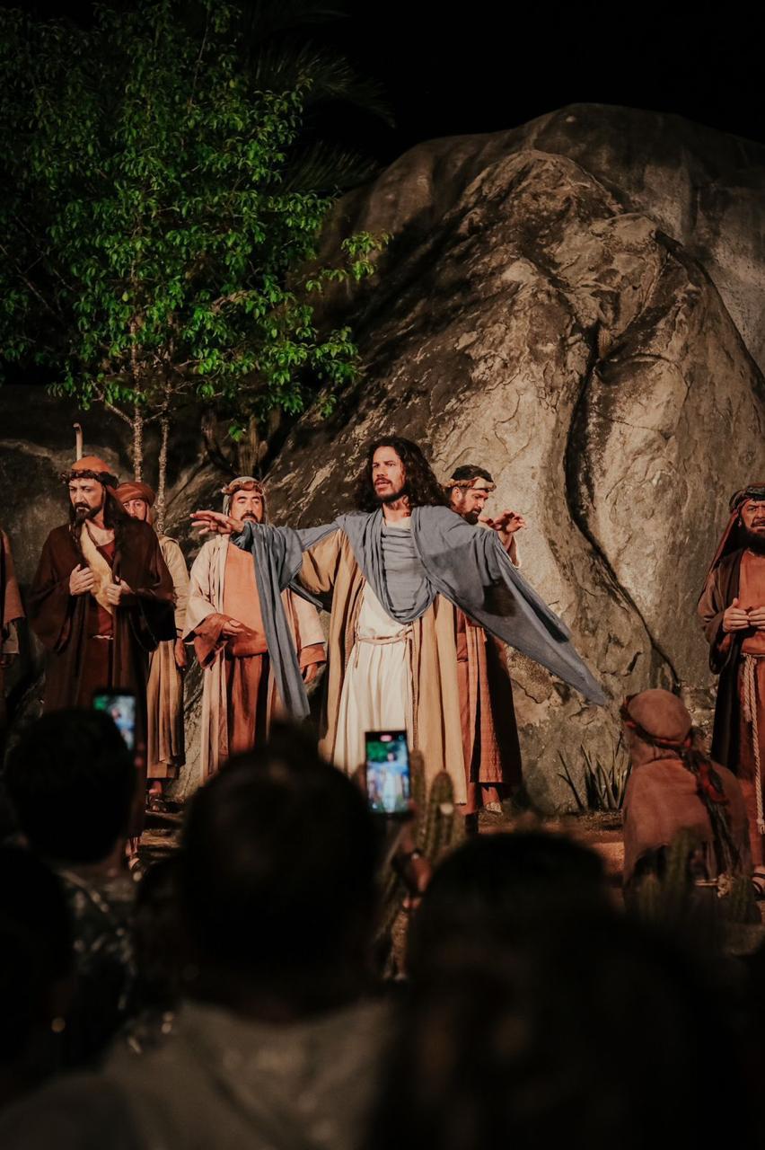 A temporada 2025 da Paixão de Cristo teve início no sábado (12) e segue até o Domingo de Páscoa, 20 de abril. Com 56 anos de história, o espetáculo é encenado dentro da cidade-teatro de Nova Jerusalém, uma estrutura monumental cercada por muralhas de pedra e torres que reproduzem ambientes bíblicos com realismo.
