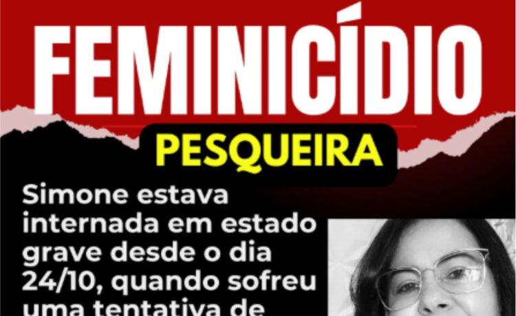 Simone Almeida foi gravemente ferida na cabeça com golpes de marreta pelo o seu ex-companheiro, o pedreiro José Arnaldo, na sexta-feira (24/10). O autor foi preso em flagrante. A vítima não resistiu aos ferimentos e faleceu na tarde de ontem (05), enquanto que o agressor foi encontrado morto dentro da cela da delegacia de Belo Jardim no dia 26 de Outubro.