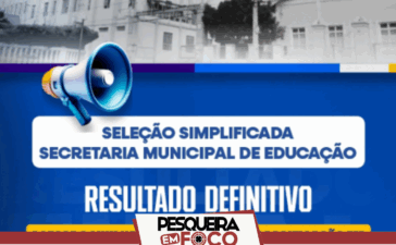 O resultado definitivo da Seleção Simplificada da Secretaria Municipal de Educação de Pesqueira-PE já está disponível para consulta no site...
