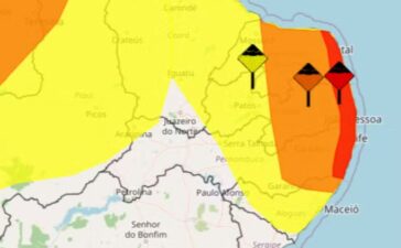 O Instituto Nacional de Meteorologia (Inmet) emitiu dois alertas de chuvas intensas válidos até as 23h59 do sábado (11) para...