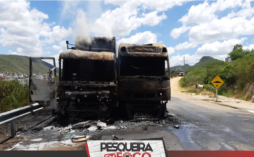 Um dos veículos estava carregado com combustível e o outro levava uma carga de bacalhau. Dois caminhões pegaram fogo após...