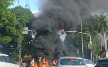 Rua foi bloqueada por entulhos incendiados por volta das 8h. Quatro desvios foram realizados na região, segundo CTTU. Uma rua...