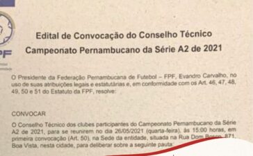 Ontem (08/04), o presidente da Federação Pernambucana de Futebol, Evandro Carvalho, publicou o edital de convocação do conselho técnico dos...