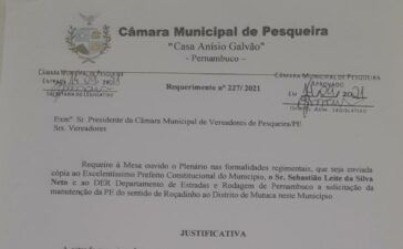 Ontem (28/09) na sessão da Câmara Municipal de Vereadores de Pesqueira fiz uma indicação ao Prefeito Interino do Município que...