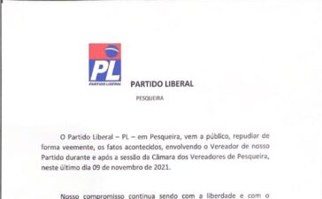 O Partido Liberal de Pesqueira divulgou uma nota de repúdio na tarde de ontem (quarta-feira, 10) em relação a um...