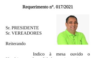 Requerimento nº. 017/2021 Sr. PRESIDENTE Sr. VEREADORES Reiterando Indico à mesa ouvido 0 Plenário nas formalidades regimentais, que seja...
