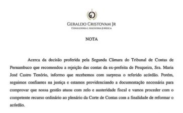 Pesqueira: A ex-prefeita Maria José Castro Tenório, pelo seu advogado, emite Nota de Esclarecimento sobre sua condição política e administrativa....