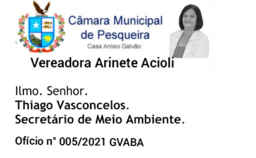 Oficio nº 005/2021 – G.V.A.B.A. Ilmo. Senhor. Thiago Vasconcelos. Secretário de Meio Ambiente. Ao Ilmo. Senhor: Sirvo-me do...