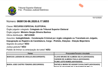 Em mais uma ação uma Ação de Investigação Judicial Eleitoral (Nº 0600494-55.2020.6.17.0057) por abuso do poder Político, a justiça eleitoral...