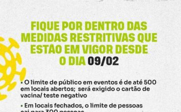 - O limite de público em eventos é de até 500 em locais abertos; será exigido o cartão de vacina/...