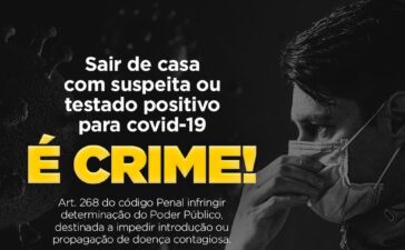 Respeite as orientações das autoridades sanitárias! Sair de casa com suspeita ou testado positivo para COVID-19 é crime. Não coloque...