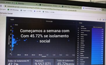 Painel Índice de Isolamento Social pesqueira esta com 38.3% de isolamento hoje domingo dia c20 de setembro e esta em...