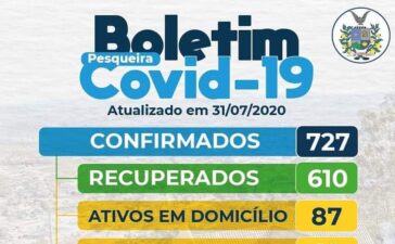 Boletim detalhado dos casos de COVID-19 em Pesqueira. Os dados referem-se aos casos notificados até o dia 31/07, onde é...