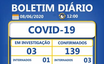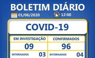 Nesta Segunda feira dia 01 de Junho , não houve registro de nenhum caso confirmado, apenas um caso de obito...